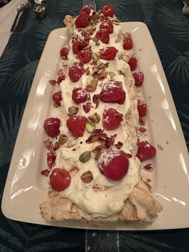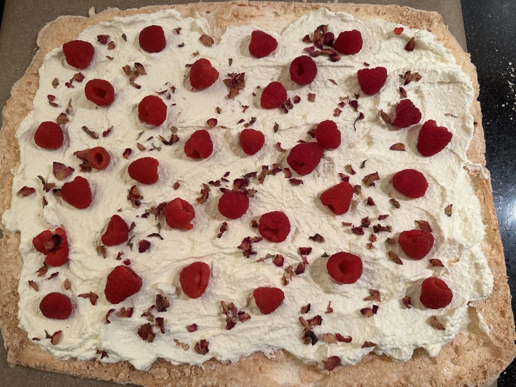 meringuerol met rozenblaadjes en frambozen (Ottolenghi)