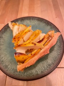 Een heerlijke kleine, gespikkelde appel die opmerkelijk naar ananas ruikt en smaakt. Het boompje geeft ons nu voor het tweede jaar appels (en schitterende wit-roze bloesem). Het eerste jaar oogstten wij nog niets; het tweede jaar oogstten wij trots 16 appels, maar dit jaar zijn het er 72! Dat vraagt om verwerkingsoplossingen.