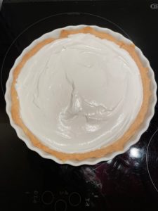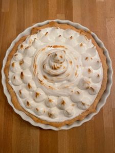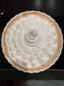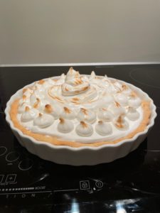 Deze taart heeft als basis het recept voor de perentaart, maar daar waar in het andere recept de peer aan de beurt was komt nu een laag Italiaanse meringue.