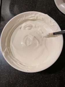 Klop de slagroom met wat (poeder)suiker tot een stevig geheel. Meng in een kom de mascarpone met een scheut melk en roer met een lepel tot een gladde, soepele massa ontstaat.